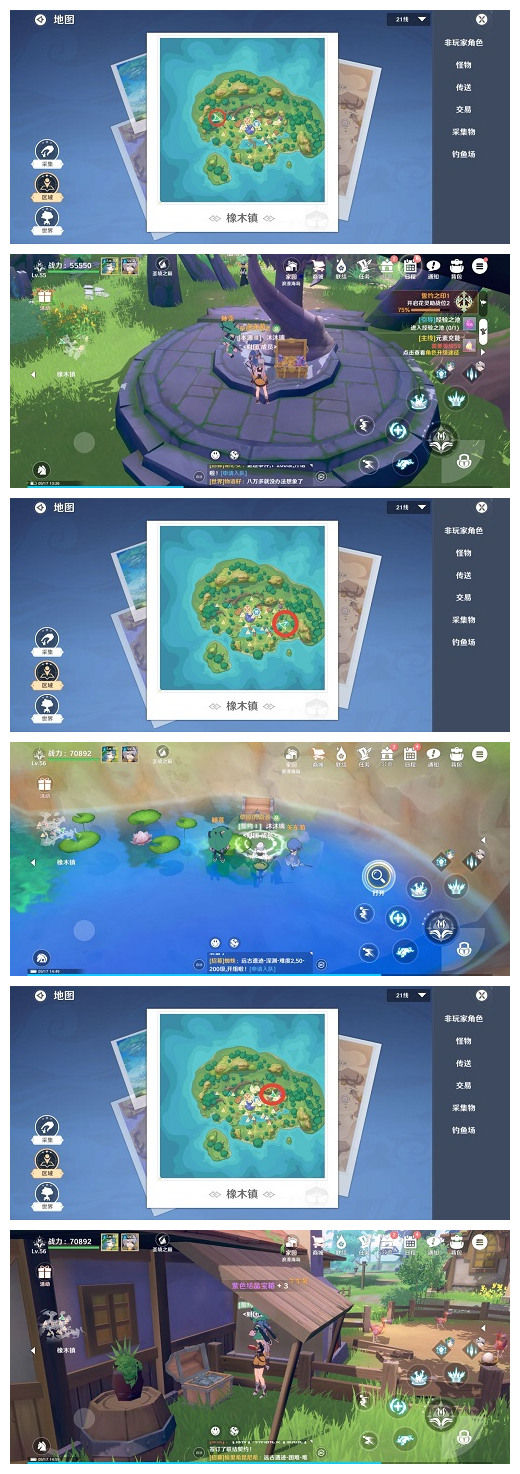 1、橡木镇地区一共有三个宝箱,玩家可以参考上图红圈的位置去寻找。