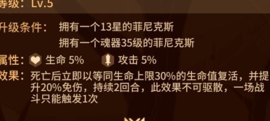 被动三技能的死亡后复活(受灭魂影响),复活后提升30%免伤,被动四技能受到攻击时100%概率对攻击者附加【烈焰灼烧】状态,每回合附加生命值上限7%的伤害,所以凤凰无脑堆血量就可以。