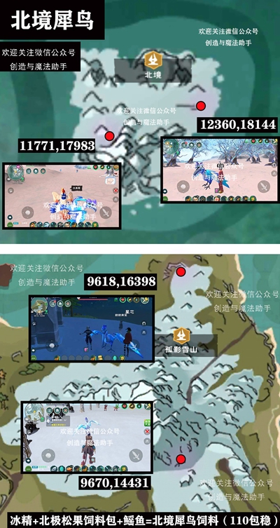 饲料:冰精+北极松果饲料包+鳐鱼=北境犀鸟饲料(105包)