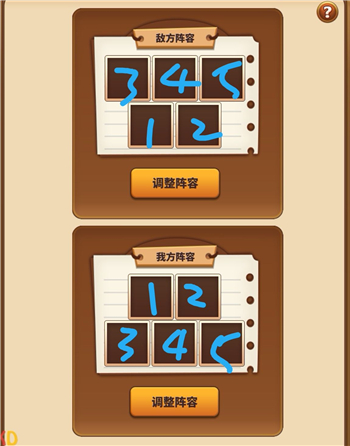 可以看到双方前排是互相攻击的,对面左边1个后排在攻击我方1号位置,右边两个后排在攻击我方2号位置。