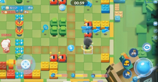积木地图中盛产的道具是“能量鞋”和“防御头盔”,大胆的前往地图的中央,利用钉子装置,灵活巧妙的完成击杀吧。