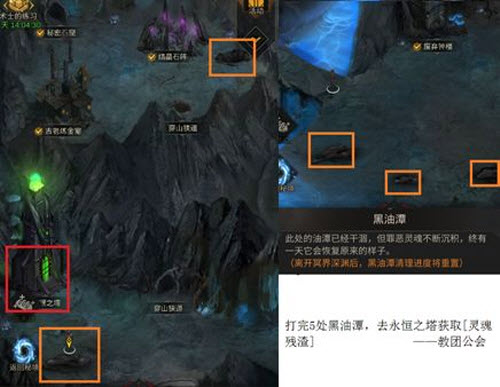 打完五处之后再去永恒之塔获取灵魂残渣即可,需要注意的是离开该地图的话黑油潭的清理进度将会重置。