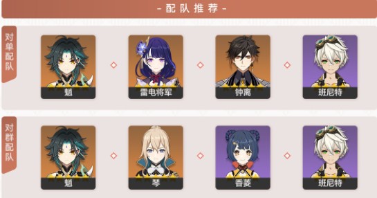 4.对群配队:魈、琴、香菱、班尼特