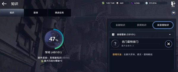 2、在人物右侧的墙边我们就可以看到知识,点击解锁。