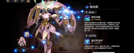 维纳斯属于新的异化神意系列虚数体,副召唤位上依然有全队伤害上限加成。