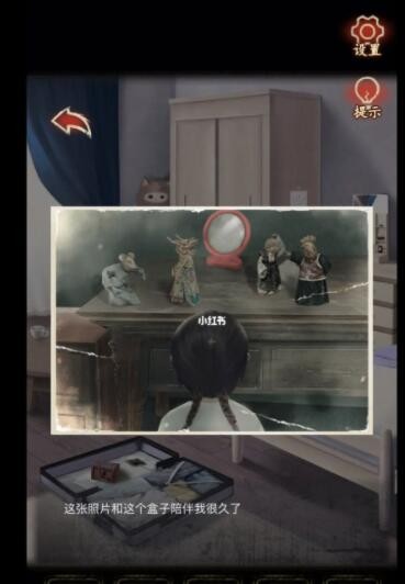 梳妆台抽屉中得到【钥匙】打开梳妆柜右侧上层抽屉,发现密码纸,根据左侧字条方法连接生辰八字如图得知数字“14376229”打开床下行李箱,衣柜中得到【衣服】放到行李箱中,查看照片得知生肖“鼠龙猴鸡”打开盒子点击护身符,通过剧情