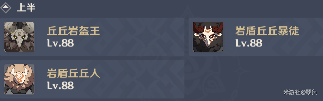 (1)上半:存在大量的岩盾怪物,利好岩系角色,当然不带岩系角色强杀破盾也丝毫不慌。注意拉怪物的嘲讽