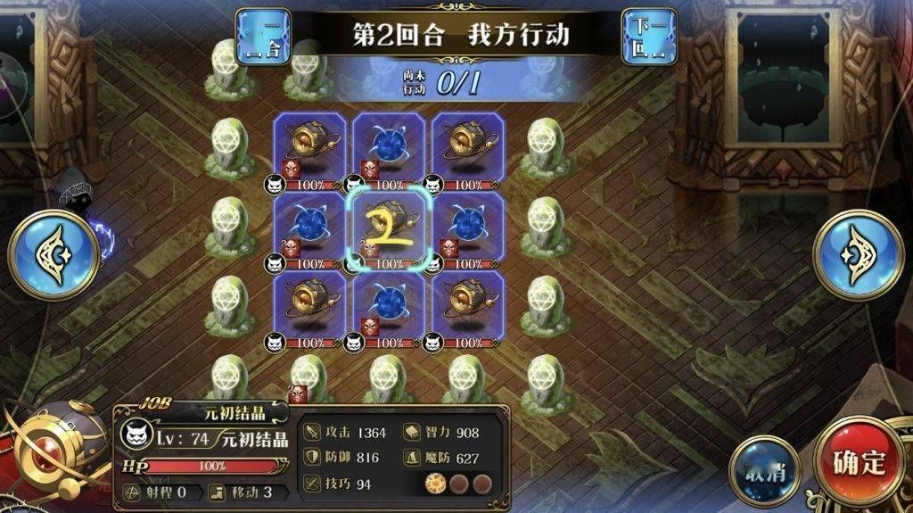 第二波,顶层有个电球自带1层debuff,在它下面的机械球上释放1技能,这个机械球下面的另一个机械球上释放2技能,再给第一个机械球释放1技能结束。