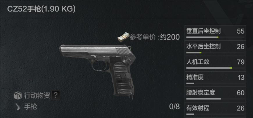 CZ52是新增武器中唯一的手枪,与T54一样使用7.62x25毫米口径弹药,两者的基础属性相差无几。