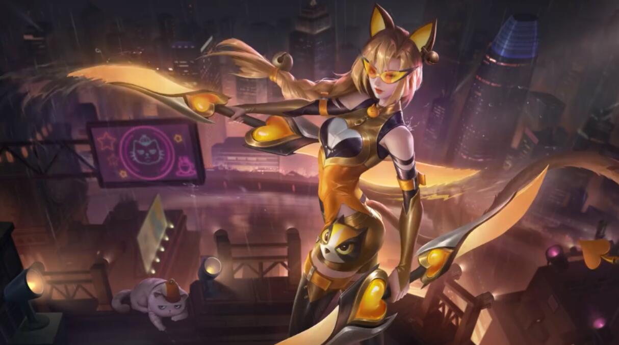 武器设计为双刃弯刀,并在手柄位置加入了两颗爱心元素,在耳朵和鞋子的位置添加了铃铛元素,性感又不失可爱。