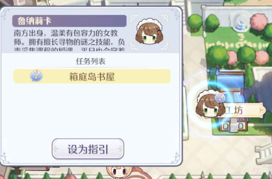 在和校长对话过后她推荐我们去寻找位于工坊的鲁纳莉卡老师。