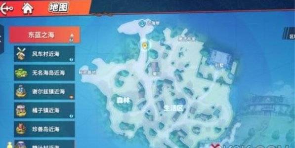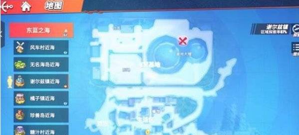 点击右上角的地图,进入东蓝之海,谢尔兹镇近海的右上方,也在基地大楼中间位置。