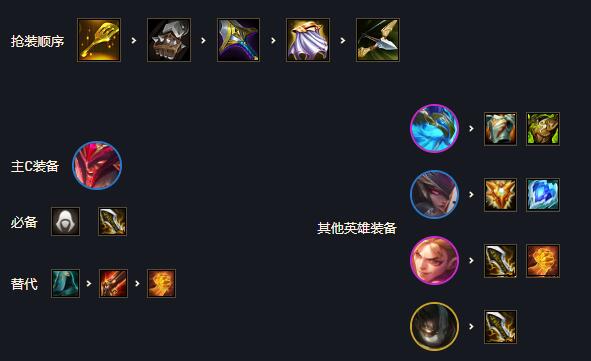 1、开局铲子局。或者海克斯给个阿福的百宝袋或直接给个刺转纹章才考虑玩。2-1拉42-5拉5。有拉夫的话直接用拉夫配格斗/狂刃/刺客等羁绊过渡。没有拉夫可以先用剑魔/永恩等带装备。