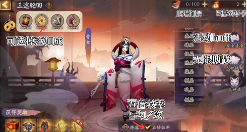 先刷百鬼乱狱,拿到马面解锁buff,再切换成体力打到最高的层数。