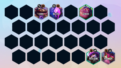 2阶段:2-1拉4人口,2-3升5人口。前期塔姆、斯卡纳、崔丝塔娜、黑默丁格打工过度,传送门给蛤蟆,两星塔姆前期很硬,5人口随便补一个三费卡,璐璐最好这样能更快提升诺西姆的星级,尽量保住连胜一直到二阶段野怪结束,如果能合朔极之矛给崔丝塔娜。