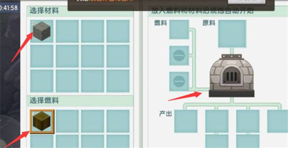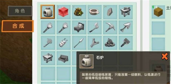 3、接着我们需要准备4个土块以及8个岩块,即可开始合成石炉。