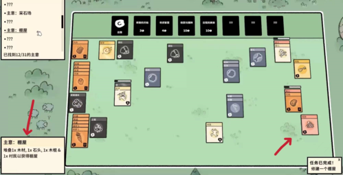 2.根据配方堆叠后,可以获得棚屋的卡牌,每一个棚屋卡牌能增加4张卡牌容量。建造的棚屋,卡牌容量越大。
