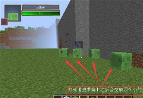 2、接着我们找到史莱姆就开始击杀史莱姆,它会分裂成4个小史莱姆。