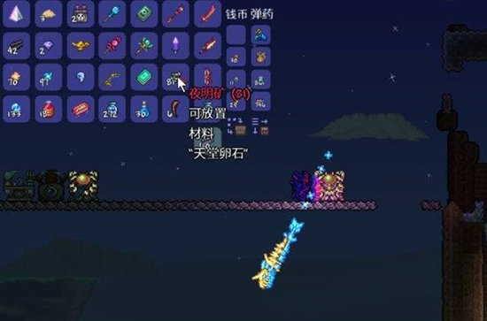 3、接着打开制作页面,并将夜明矿和天堂卵石放进去。