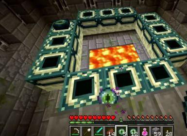 3、极少数的地牢会放置好末地传送门的框架,如果没有框架,我们就需要自己使用12个末地传送门方块,摆放缺少死角的末地传送门框架。