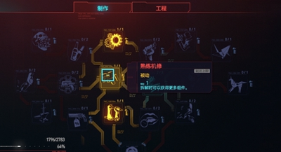 1、开局在制作天赋树里点上“熟练机修”,
