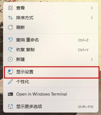 1、首先玩家需要右键点击电脑桌面,并选择显示设置。