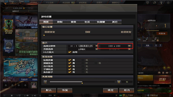 3、最后玩家进入游戏打开设置,将游戏分辨率和电脑分辨率调整一致即可。