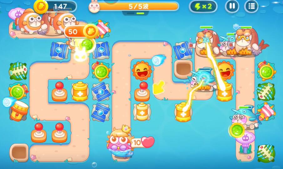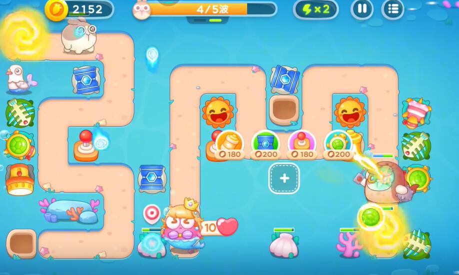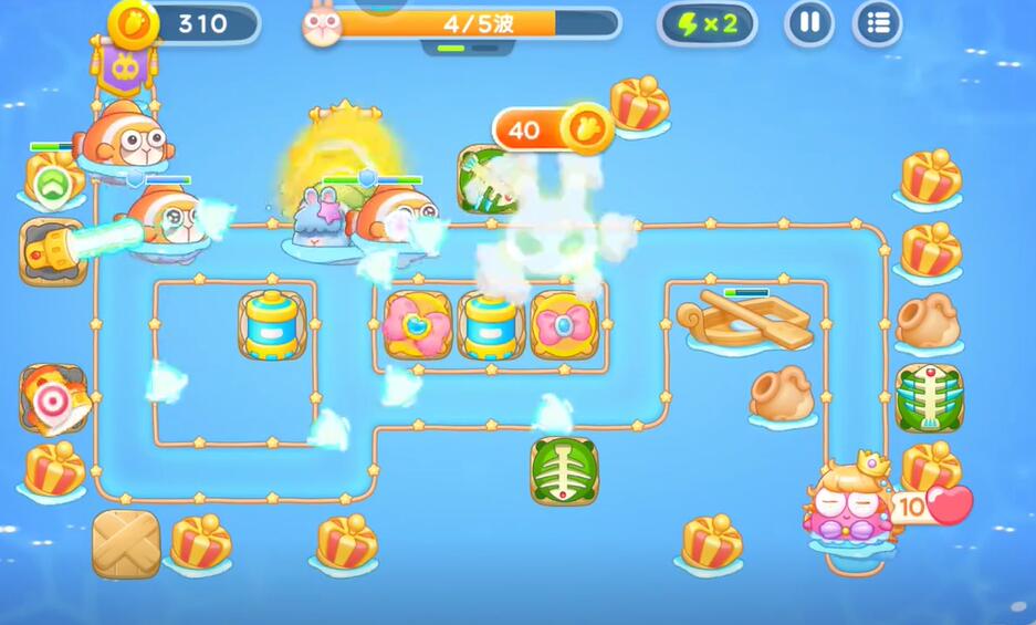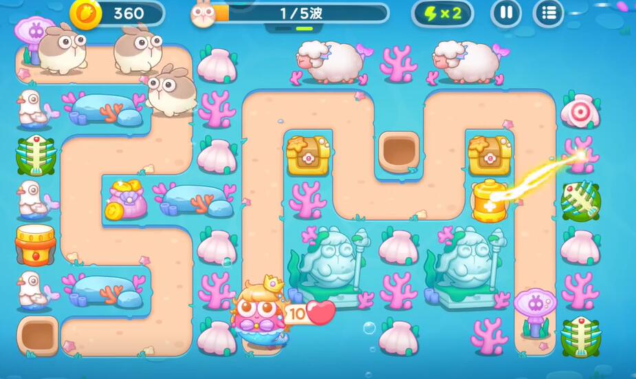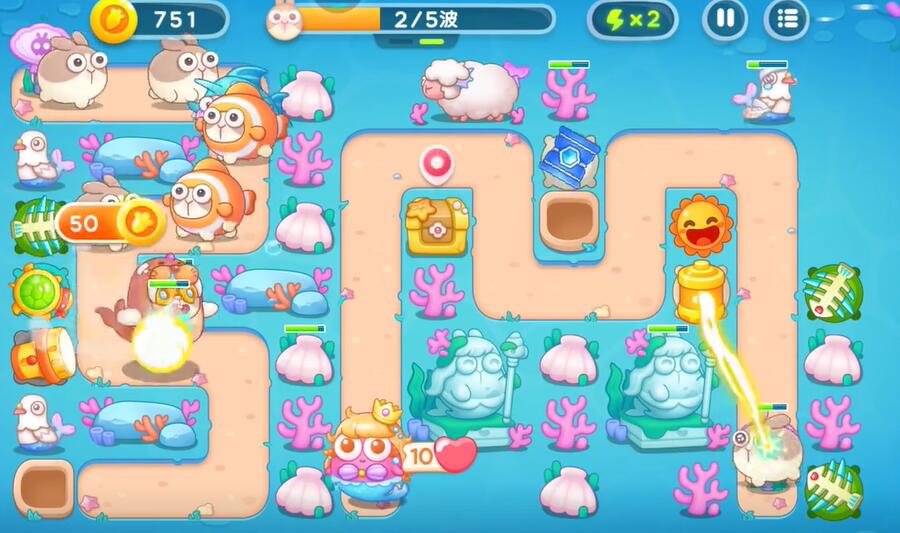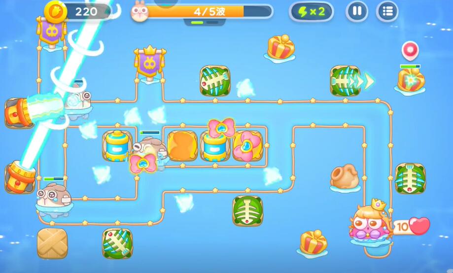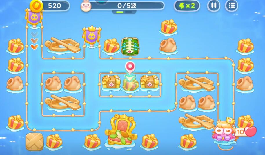 6、在两路的兔子都会走的路线上建造更多的防御塔,清理掉所有的兔子,即可完成本关的挑战。