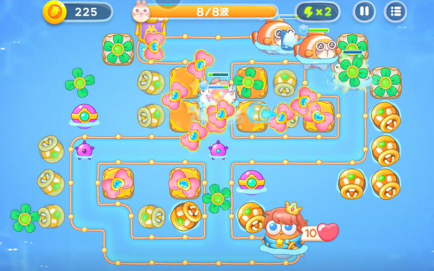 8、最后两波只需要在伤害不足的地方建造更多的防御塔,消灭所有的兔子即可完成本关的挑战。