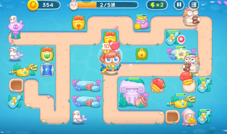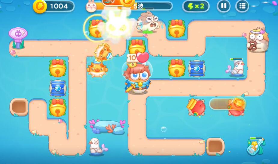 7、在右侧的道路和左侧的前往传送口的道路上建造更多的防御塔进行输出,清理所有的兔子即可完成本关的挑战。