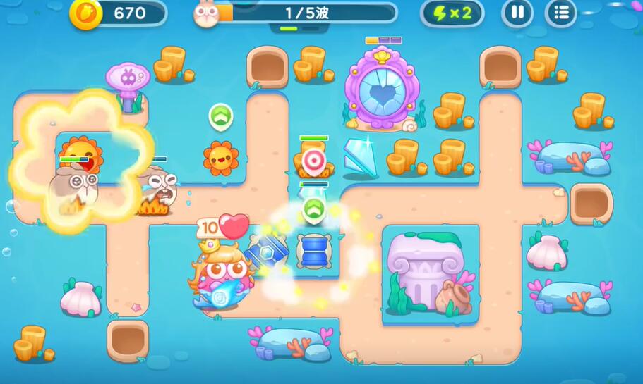 6、建造更多的双向塔清理掉所有的怪物,即可完成第一轮的挑战。
