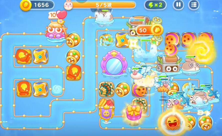 5、建造更多的保龄球、鱼雷飞镖等塔清理掉所有的兔子,即可完成本关的挑战。