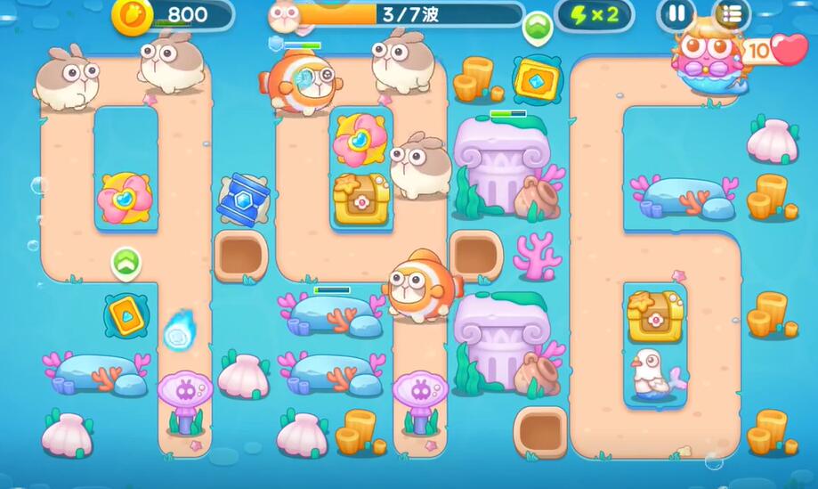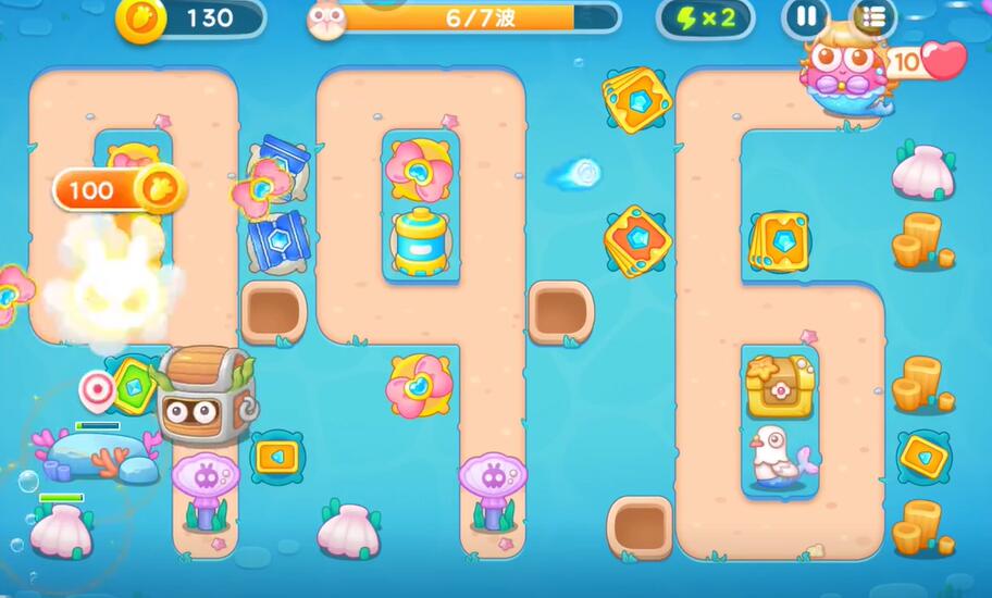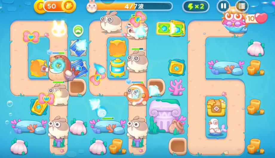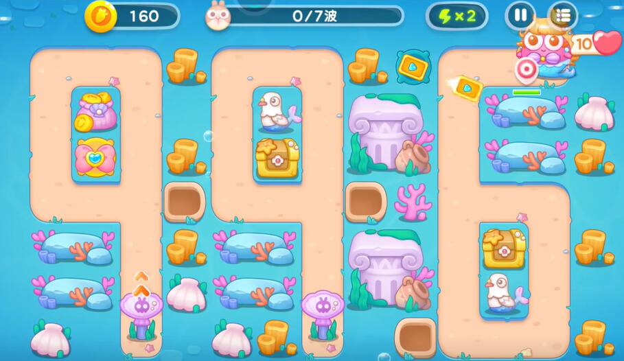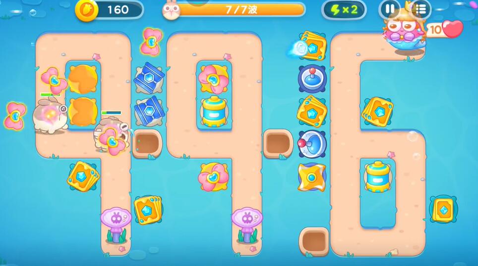 7、如果输出不够的话就在兔子的必经之路上建造更多的防御塔,清理掉所有的兔子即可完成本关的挑战。