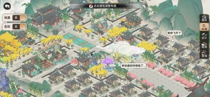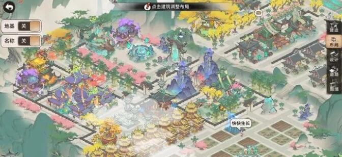布局三:在山门的入口处建造了很多精美的场景,同时安排了弟子的起居,所有的核心建筑也经过了精心的整理,可以让你在一个屏幕内就找到自己需要的内容。并且对后山也建造了还来那个的资源生产内容,能够满足不同的需要。