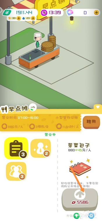 3、早餐店在右下角有个升级键,大家使用相应的钱,即可升级早餐店;