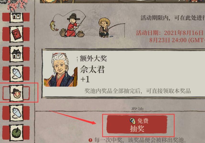 也可以在活动中,找到佘太君,进行抽奖,第一次是免费的,之后可以用灵犀旗抽取。