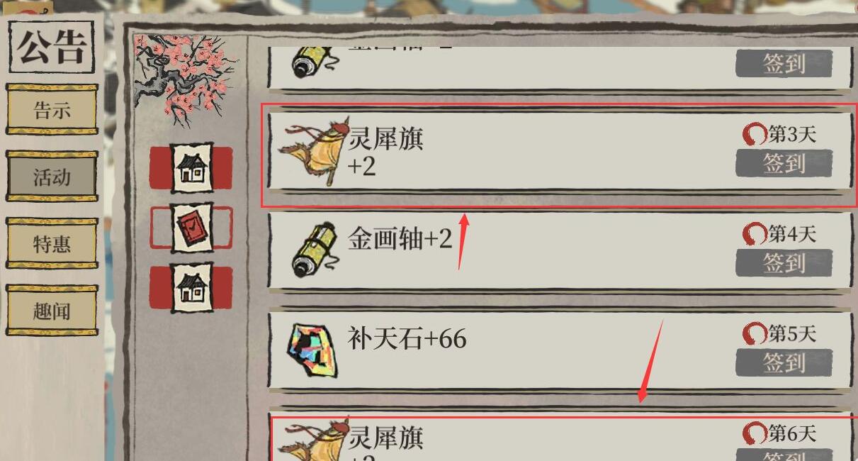 3、还有在活动中签到,也能获取灵犀旗。