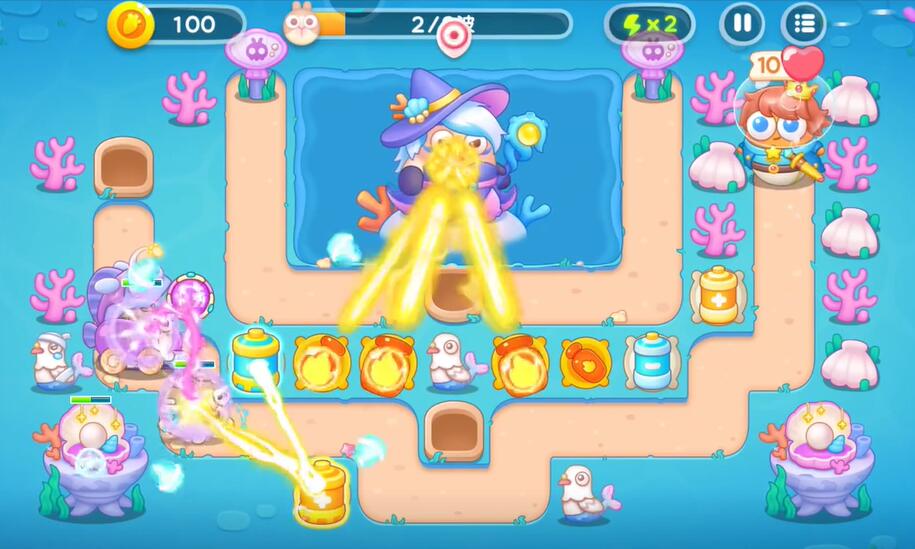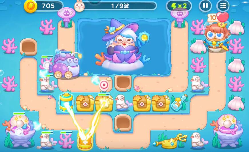 9、在左侧建造魔法球和减速塔,更好的清理小怪。