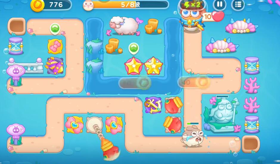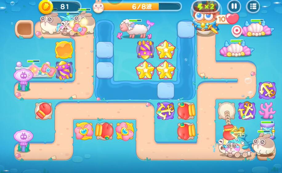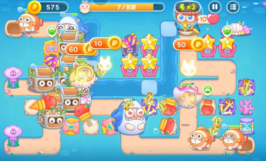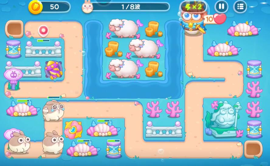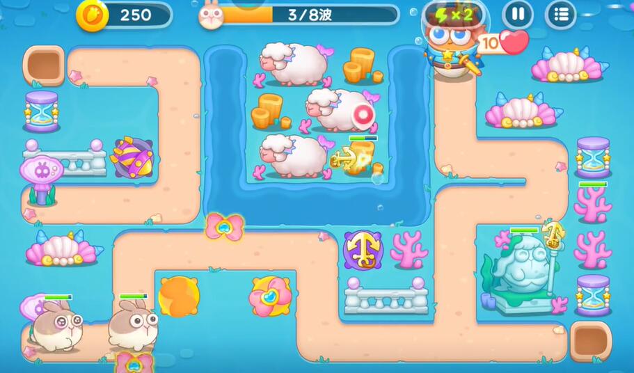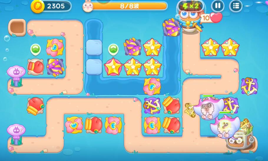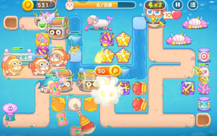 7、补充更多的星星塔对会飞的兔子进行攻击。