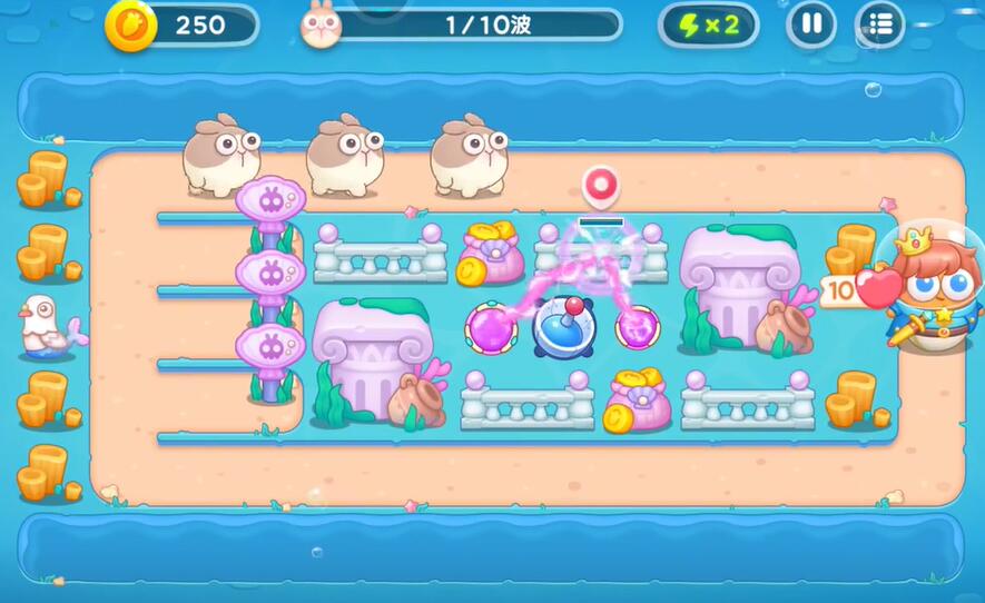8、根据实际的情况补充更多的防御塔,清理掉所有的兔子,即可完成本关卡的挑战。