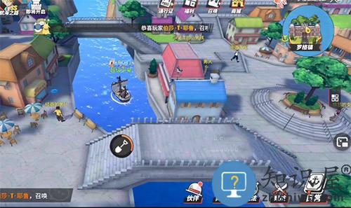 玩家来到这个罗格镇近海的区域,然后在如图所示的地方,就是这个桥的上面,需要你乘船才可以来到这个地方。