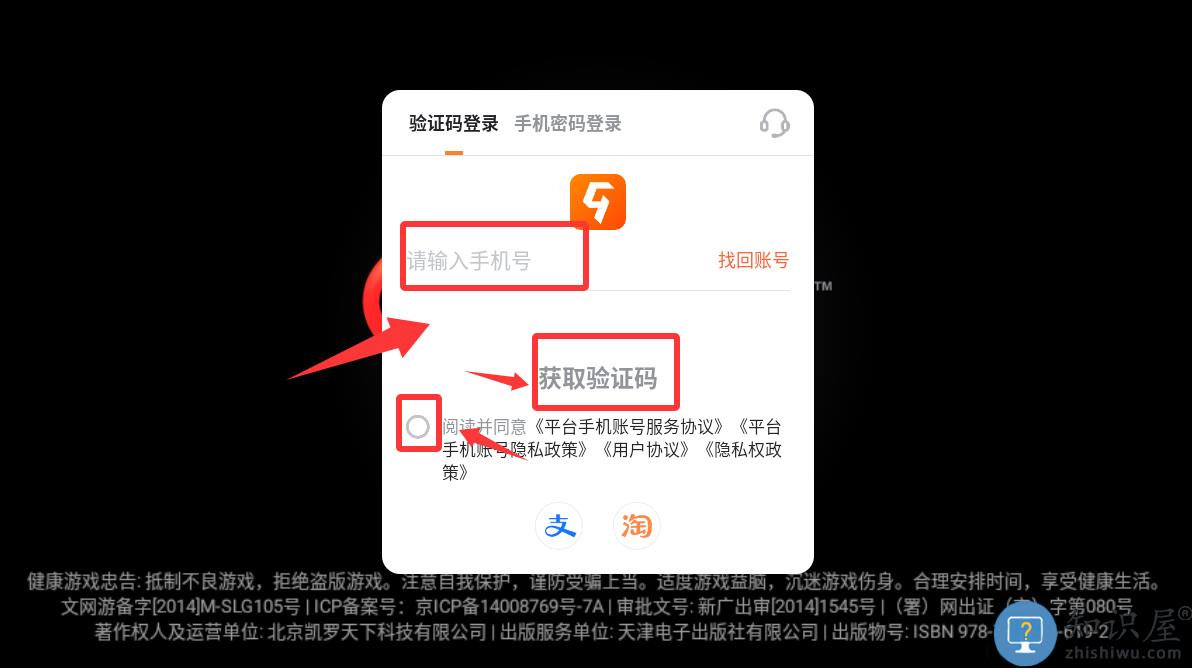 2、输入手机号码获取验证码然后打√并进入。