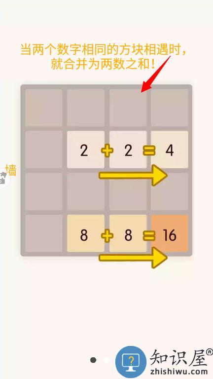 2、相同数字的方块相撞时会合并成为原数字两倍的新方块。