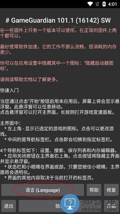 1、在本站下载gg修改器进入软件后,点击底部语言即可修改应用的语音