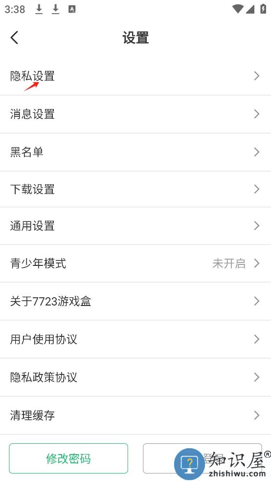 在设置界面找到隐私设置进入。