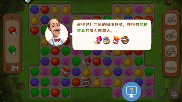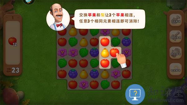 2、确定id后即开始新手教程,通关移动水果进行配对,从而消除同类型水果