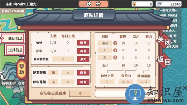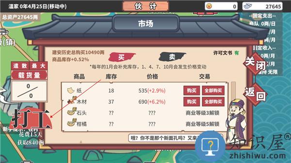 2、只有拥有20000两才可以开始商业,所以首先要进行打工赚钱,每次打工都会消耗游戏中的15天,不过不要担心,只要随便打几次工就可以获得神秘女子的资助。