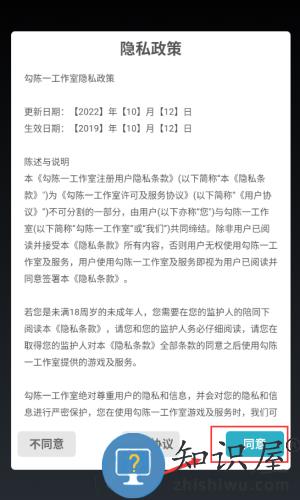 1、点击同意按钮,确认隐私政策开始游戏。