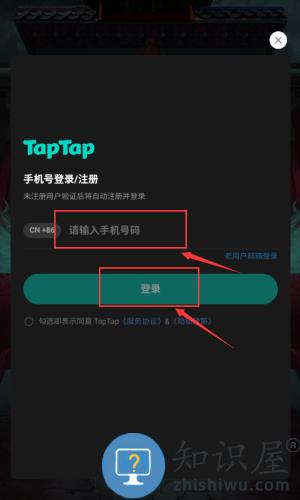 3、输入手机号码,点击登录完成注册。