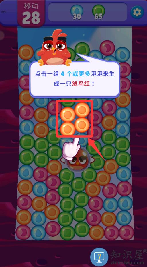 2、点击一组4个或者更多会生吃一只怒红鸟。